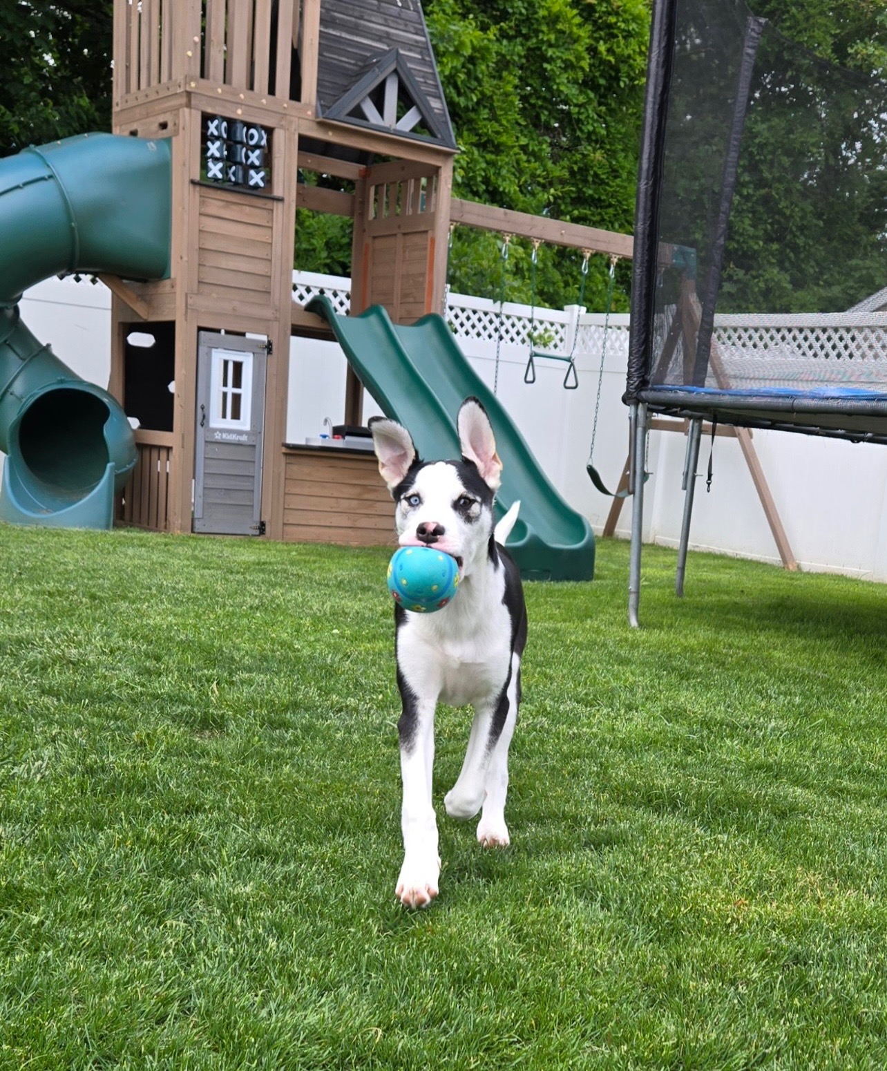 Zeke is a super sweet 9 month old, 55 lbs husky lab mix. Zeke is the sweetest, most playful boy. He loves every person he comes in contact with. He loves children and other dogs. Zeke’s wish list includes a playful young dog pal who will run around the backyard with him and/or an active family. He loves to cuddle but he is not a couch potato and needs to be active and get exercised daily. He currently lives with 2 other dogs, 1 cat and 2 young children. Zeke loves long walks and a game of fetch in the backyard. As playful as he is, he’s also the perfect snuggle buddy. He is house trained and walks well on a leash. Zeke truly is the perfect companion. Zeke is neutered, up to date on vaccines and microchipped.
