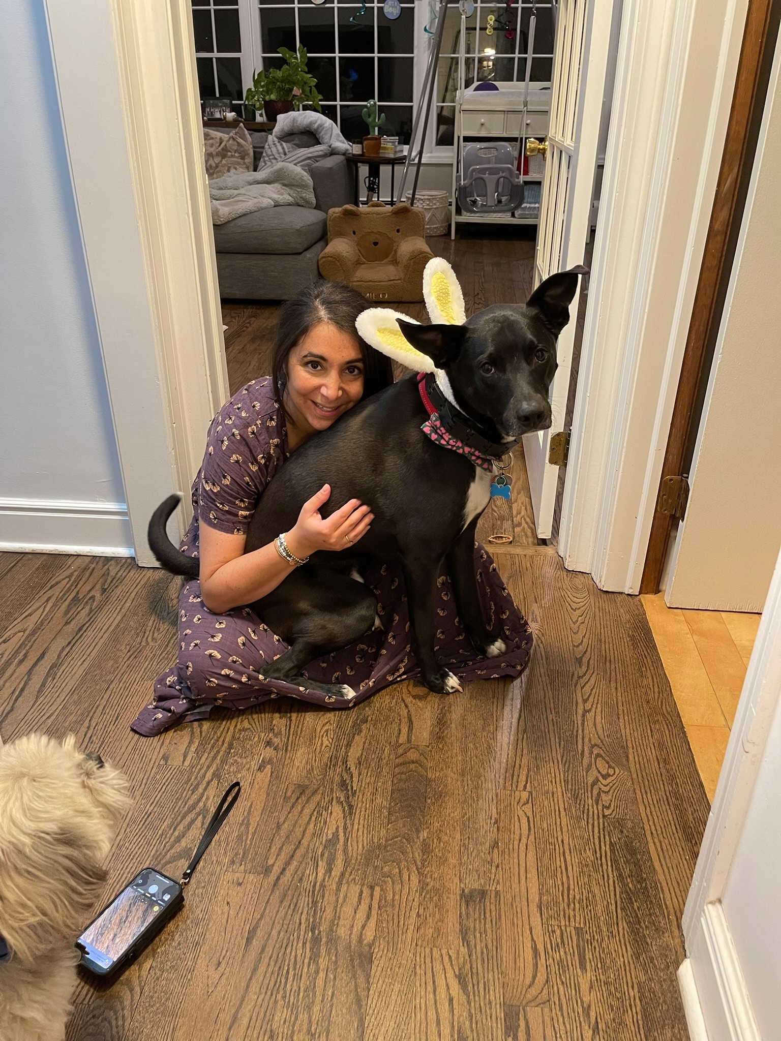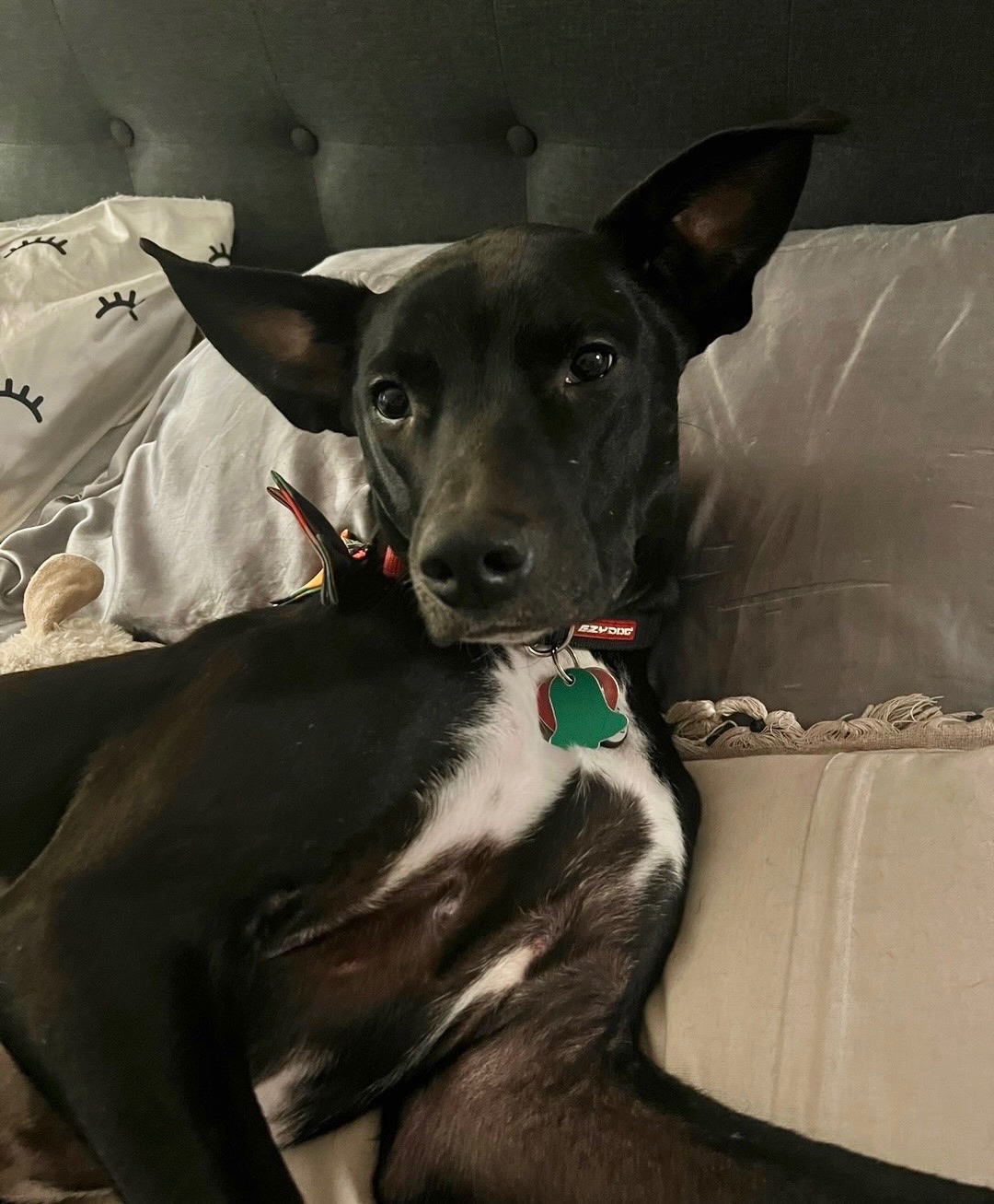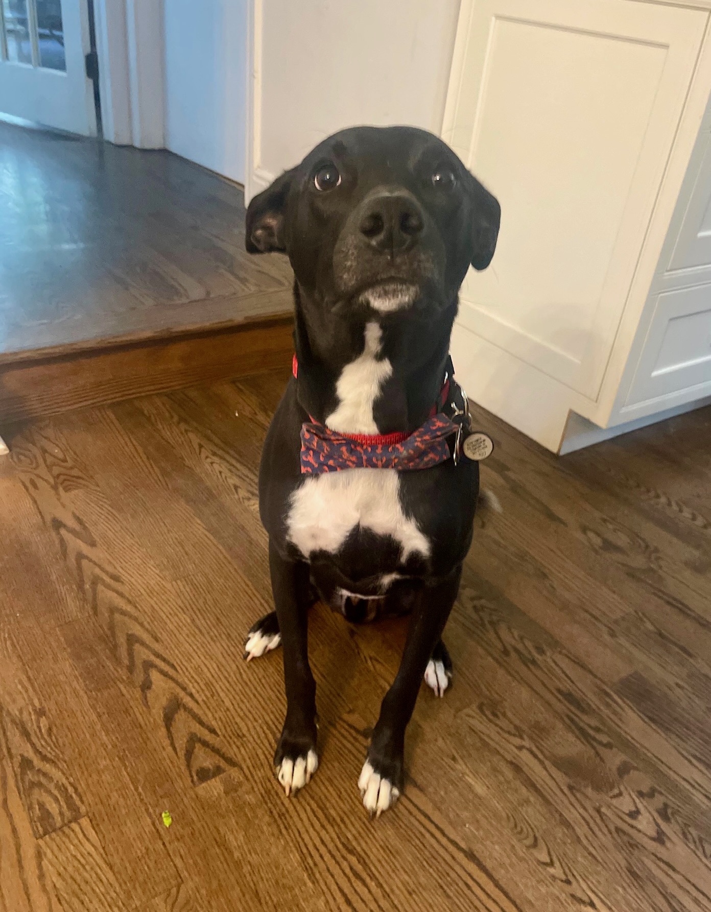 Mallomar is a handsome 3-year-old, 60-lb athletic Basenji/Lab mix pup with a sleek black coat, a bright white chest, and the cutest biggest ears. He’s playful, smart, house trained and wonderfully goofy in his own ways — he loves chasing anything you throw, proudly removing squeakers from soft toys, running around outside, and working on a really good bone.Mallomar loves to be outdoors and would thrive in an active home with experienced dog owners who are home and have time to take him on walks, hikes and have a fully fenced yard where he can run and play. He greets you warmly when you come home and makes a loving, loyal, and protective companion.